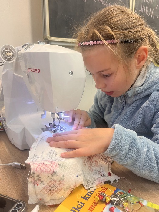 Děti zde rozvíjejí své dovednosti v oblasti čtení, psaní, mluvení a dramatizace. Kroužek klade důraz na vztah k jazyku, fantazii a spolupráci. Děti si zkoušejí vytvářet vlastní příběhy, postavy i dialogy a zároveň se podílejí na tvorbě školního občasníku, což posiluje jejich sebevědomí a schopnost komunikace.3. Kroužek šití